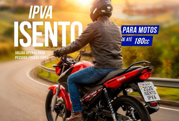 A partir de 2026, motos de até 180 cilindradas (180cc) estão isentas do pagamento do IPVA em Taubaté